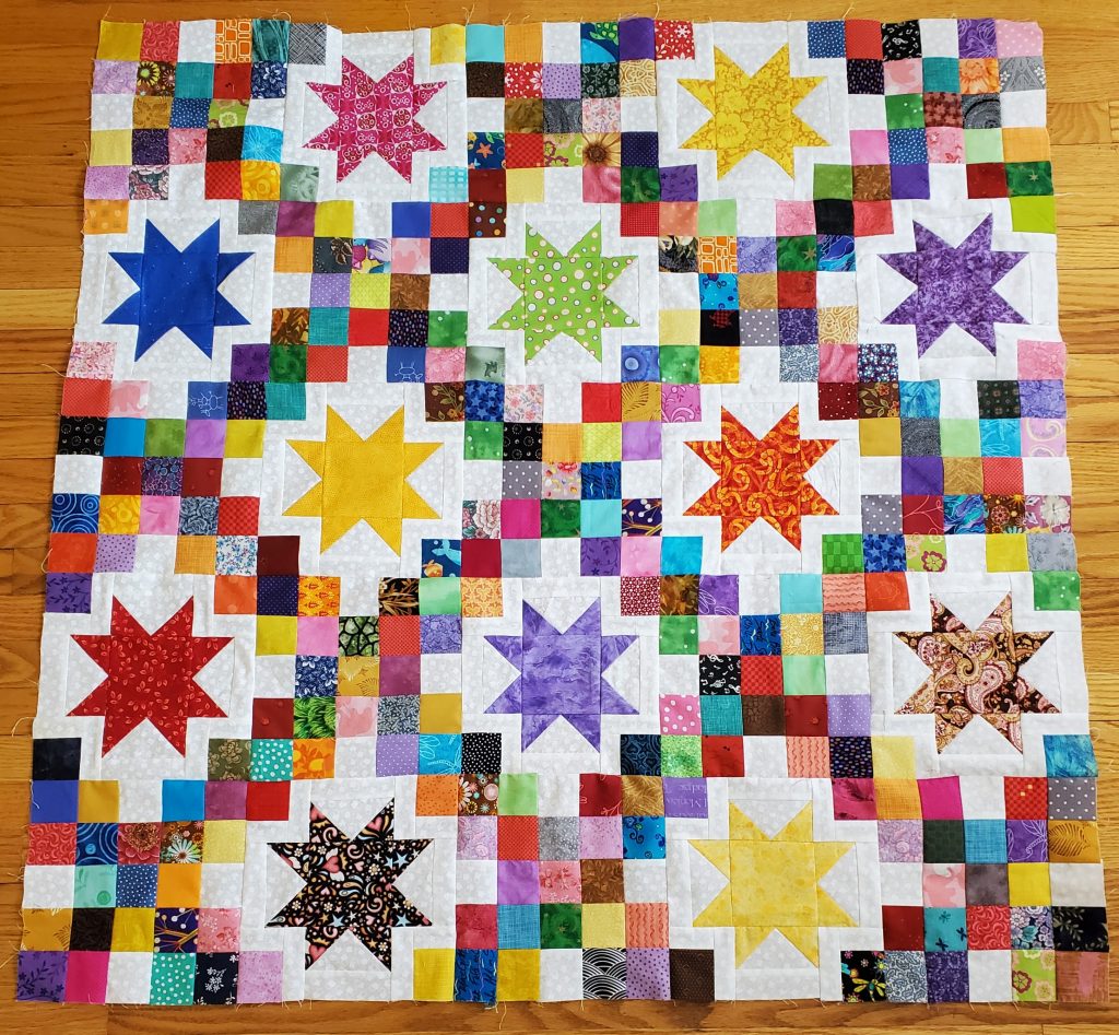 Back in 2017, Deanna at the Wedding Dress Blue Blog, started a quiltalong called the Irish Star Quiltalong As soon as I saw it I knew I had to make the quilt. What could be better than a quilt full of scrappy stars and 25 patch blocks made of 2″ squares? Yes I’m crazy, but she also had an option of 1.5″ squares. I resisted the urge as that was too small even for me. My crazy has some limits. Well, that and I don’t keep 1.5″ squares of scrap fabric.