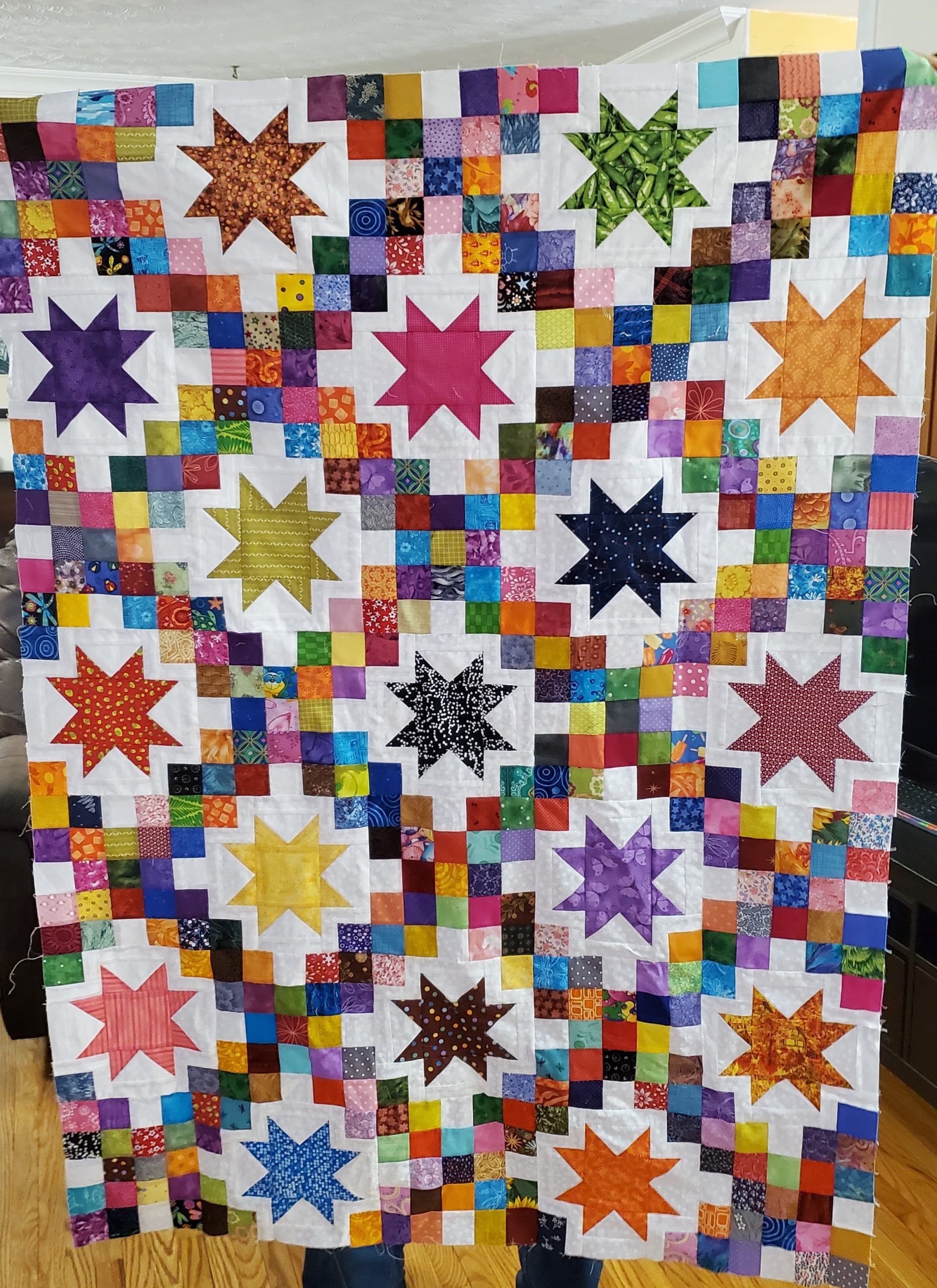 Back in 2017, Deanna at the Wedding Dress Blue Blog, started a quiltalong called the Irish Star Quiltalong As soon as I saw it I knew I had to make the quilt. What could be better than a quilt full of scrappy stars and 25 patch blocks made of 2″ squares? Yes I’m crazy, but she also had an option of 1.5″ squares. I resisted the urge as that was too small even for me. My crazy has some limits. Well, that and I don’t keep 1.5″ squares of scrap fabric.